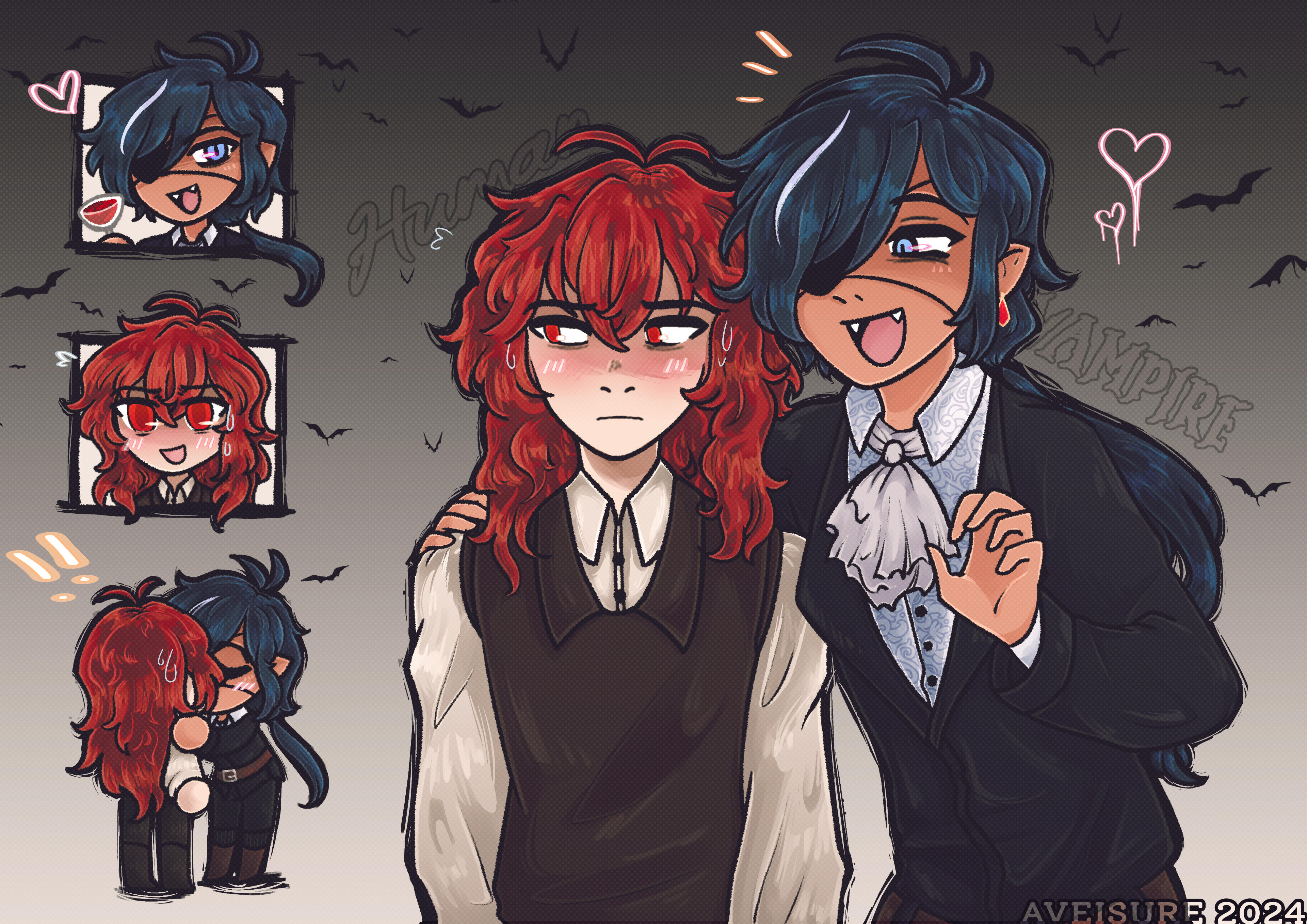 Hello! I'm Roman. I'm a hobbyist illustrator and merch seller! I am also working on my own original series. I have a big thing for vampires!5Arguably, this is moreso an archive of my artwork rather than a portfolio since I have no main hub for my collection.I can be found on various social media under the handle @aVeisure.